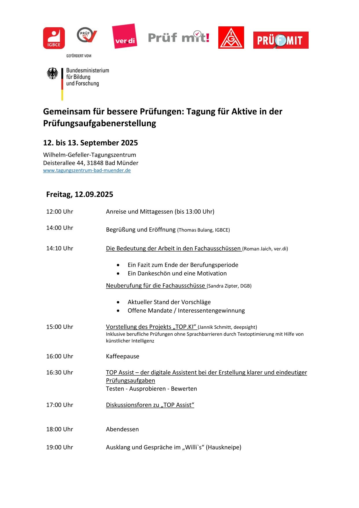 - Anreise 12.09.2025 und Mittagessen: bis 13:00 Uhr